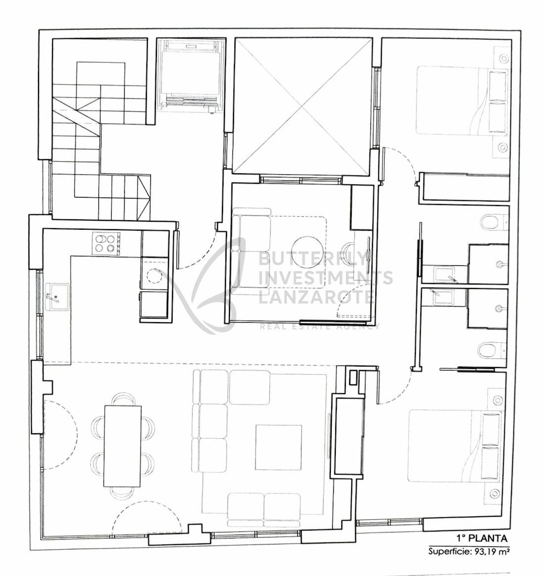 Se encuentra a tan solo 50 metros del paseo marítimo peatonal. Ubicado en la primera planta de un edificio de tres, mide 96 m2.